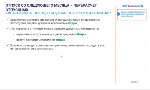 - В каком месяце пересчитывать отпускные: в текущем или в следующем?