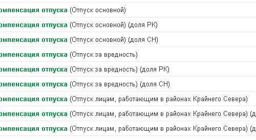 Также ЗУП 3.1 позволяет выделить доли РК и СН из оплаты отпуска на период санаторно-курортного лечения (за счет СФР). Но расчет такого отпуска в программе не производится, его полностью оплачивает Фонд. И передать в СФР сведения по видам выплат, относящихся к РКСН, невозможно. Поэтому для такого вида отпуска доли РК и СН можно не выделять.