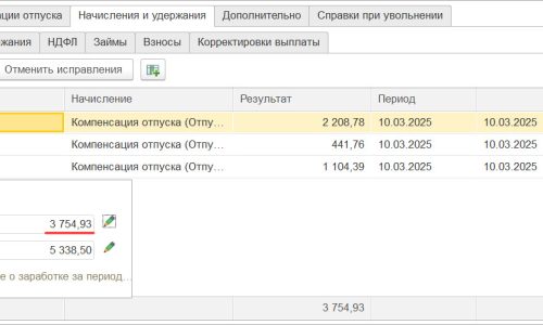 Приветствую, благодарю за формулы, внесла для своих особенностей, вопрос по использованию новых начислений с РК долей при отпуске. Теперь отпуск начисляем двумя документами- основной и доля РК? При двойном начислении у сотрудник основного отпуска и отдельно доли РК программа выдает ошибку! Второе начисление не проводится. Как быть с этим? /На период 2 февр. — 2 марта сотруднику уже зарегистрирован отпуск документом Отпуск 00ЗП-000001 от 13.01.2026/ —
