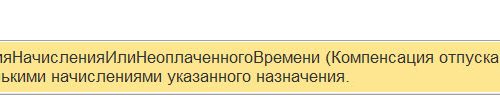 Здравствуйте! Действительно данное начисление не выделяется через помощник начислений. Какай у вас случай из статьи? Можно взять формулу для Отпуска, и в конце заменить показать КоличествоДнейОтпуска на ДнейЧасовКомпенсацииЗаНеотработанноеВремяПриУвольнении . Так поступить для основного начисления и для долевых. Смоделировала пример в демо базе — расчет верный