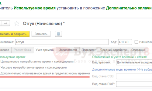 - Донастроить вид начисления Отгул.
