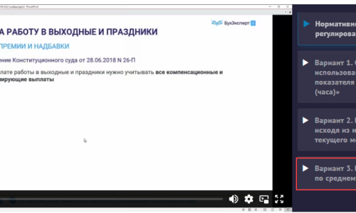 Добрый день! А где находится видео к варианту № 3 » Расчет оплаты праздничных по среднему заработку»?