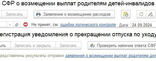 Добрый день. «Ошибка формата сообщения. Unknown format message.» Номер телефона с +7. Почему-то, когда нажимаешь на «ошибки логического контроля», открывается окно «Регистрация уведомления о прекращении отпуска по уходу за ребенком»