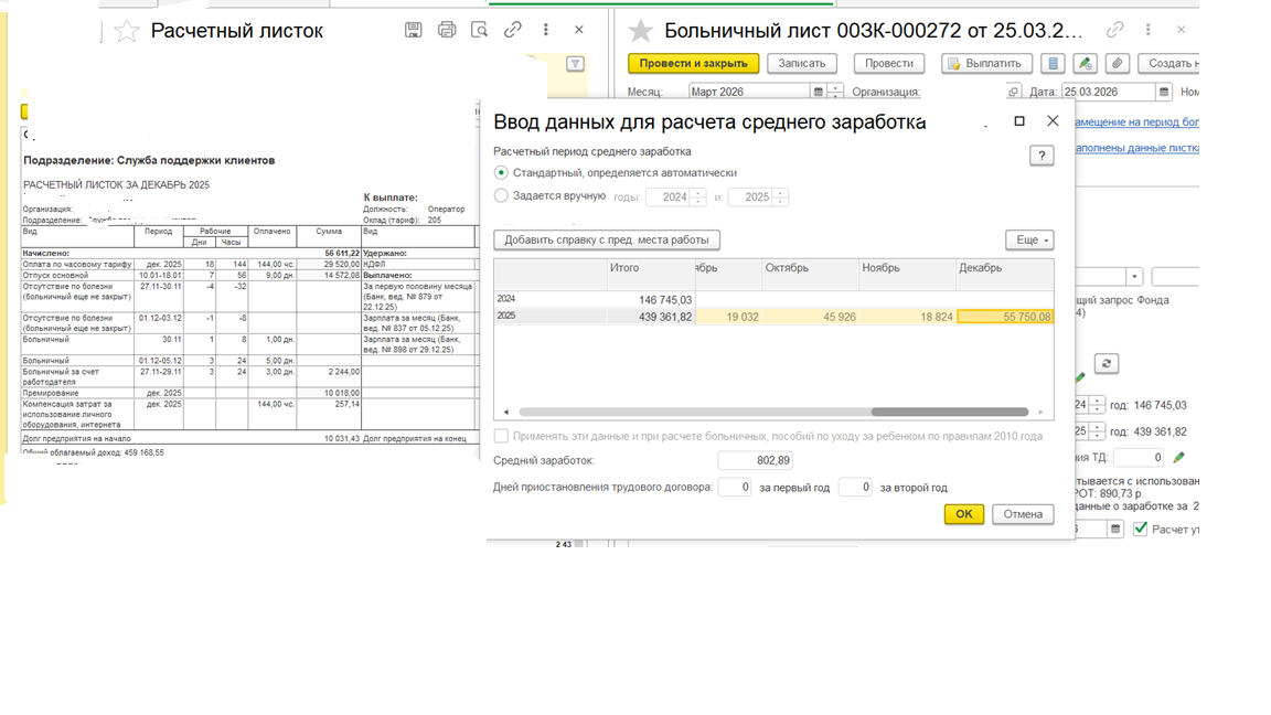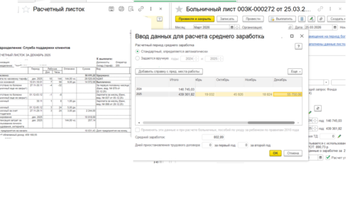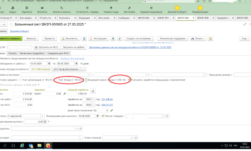 2. Добрый день. Столкнулись с проблемой в расчете больничного сотрудника, который работает у нас с 2023г. В больничном листе заработок за 2025г по данным организации проставляется некорректно. Сумма больше, чем мы передали в СФР. При этом заработок по расчетному листу равен отчету Анализ взносов в фонды и равен переданному в СФР, но не равен Карточке учета страховых взносов. В больничный лист попадает заработок, отраженный в Карточке учета страховых взносов. У сотрудника в 2026 году была корректировка ЗП за 2025. Отчет за 2025г не корректировали, т.к. сумма перерасчета была незначительна и доход за январь 2026 превышает корректировку. Как быть с такой ситуацией? В чем может быть проблема в отражении заработка за 2025г?