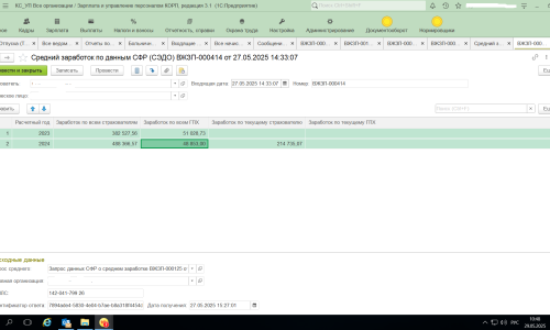 Если заработок во входящем запросе отличается от данных организации, лучше уточнить сумму заработка в СФР. Для этого отправляем Запрос данных СФР о среднем заработке (Кадры – Пособия).