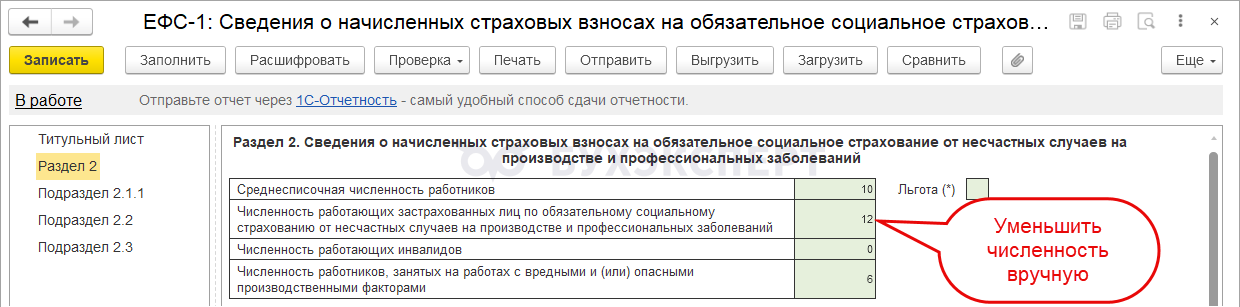 Однако при этом будет учитывать белорусского сотрудника в Численности работающих застрахованных лиц в разделе 2 формы ЕФС-1. В этом случае показатель потребуется отредактировать в отчете вручную.