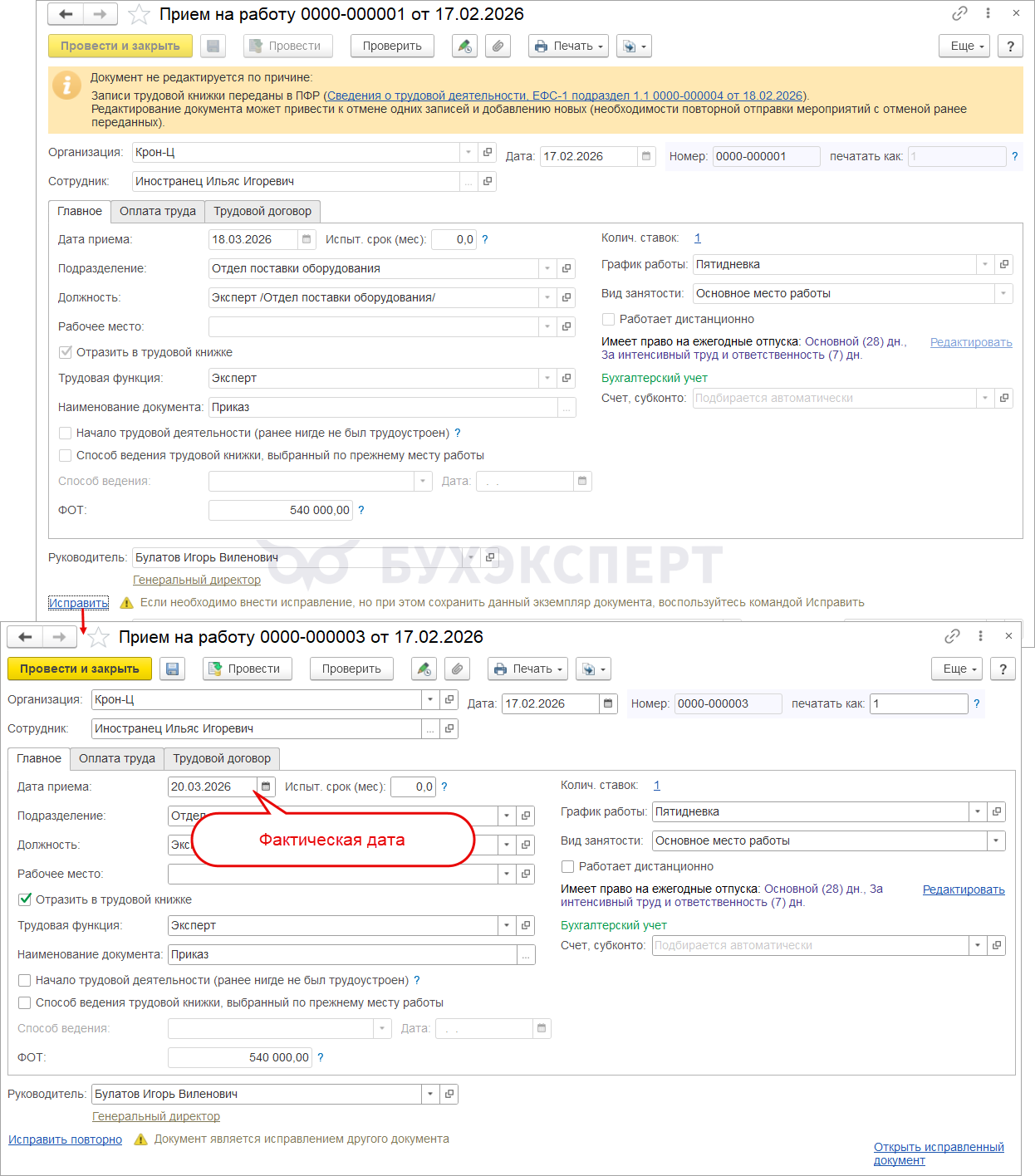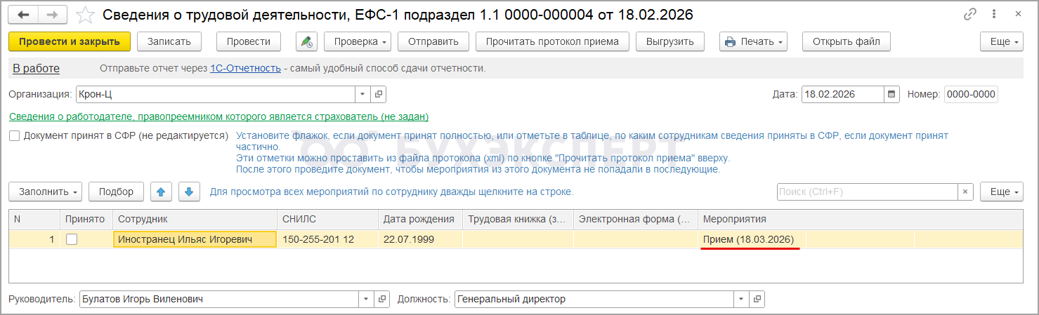 Сложность в том, что точная дата приема для кадрового мероприятия ПРИЕМ подраздела 1.1 ЕФС-1 в момент заключения договора еще не известна.