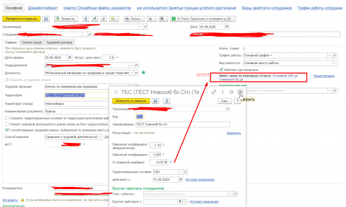 Почему если территория с ОКУ то сотруднику автоматом назначается при приеме на работу с этой территорией еще и СН (хотя стоит 0 %, проблема описана тут https://forum.mista.ru/topic/892236) и еще и Северный отпуск (хотя отдельно он нигде не назначен, ни в позиции ШР, нигде)