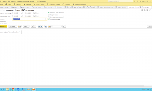 По умолчанию в Анализе НДФЛ по месяцам включен только отбор по Периоду получения дохода.