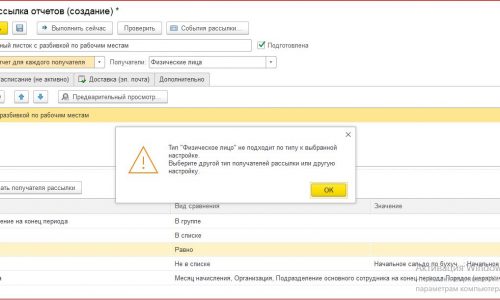 выходит ошибка: Тип «Физическое лицо» не подходит по типу к выбранной настройке. Выберите другой тип получателя рассылки или другую настройку (скрин прилагаю)…