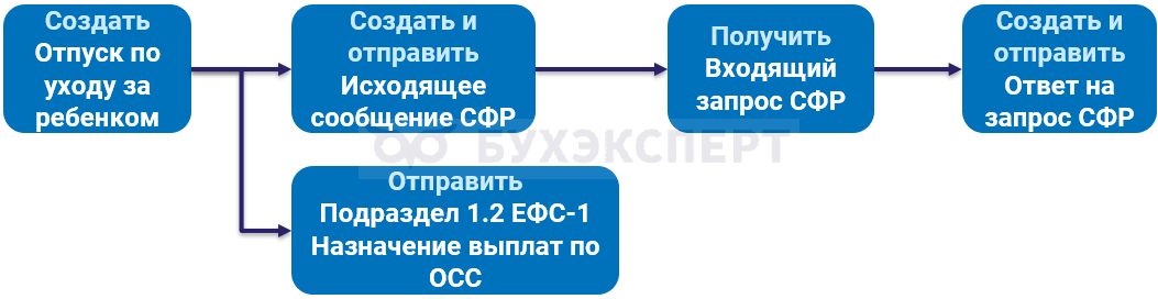 Срок отправки исходящего сообщения СФР и Подраздела 1.2 ЕФС-1 – 3 рабочих дня с момента получения документов от сотрудника.