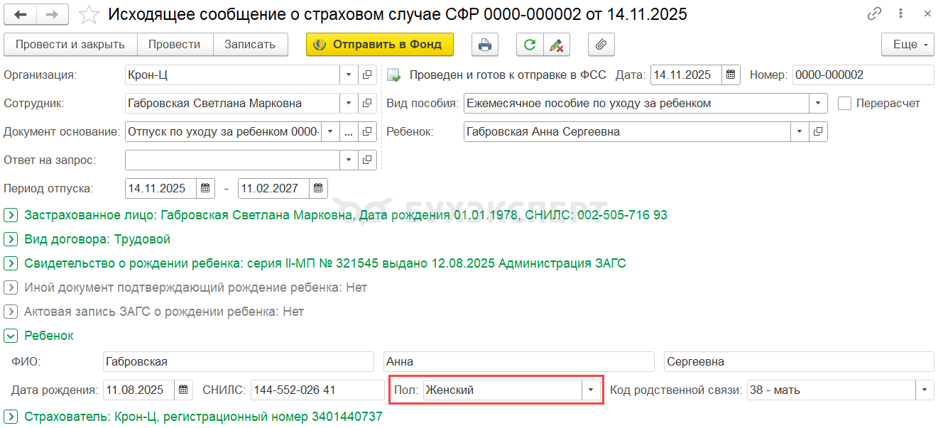 В ЗУП 3.1 пол ребенка выгружается в документах
