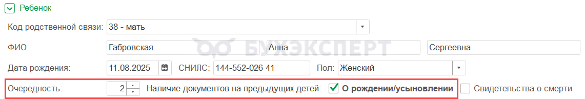 Если пособие назначается по уходу за вторым или последующим ребенком, в Ответе на запрос СФР нужно указать признак наличия документов на предыдущих детей.