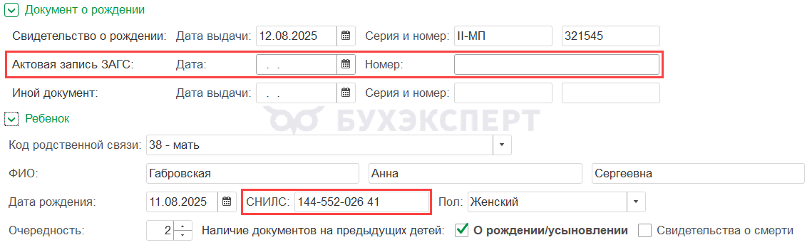 - СНИЛС ребенка