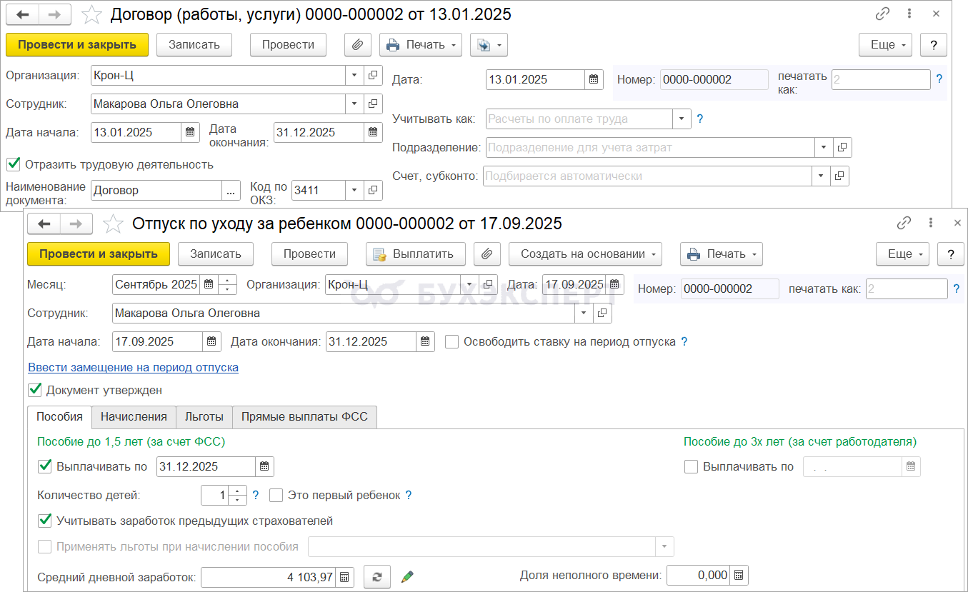 По договорникам ГПХ также можно создавать Отпуск по уходу за ребенком.