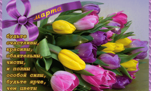 Поздравляю всех женщин с Международным женским днём -8 Марта! С праздником весны, молодости и красоты. Любите сами и будьте всегда любимы, оставайтесь такими же прекрасными и неповторимыми, надежными и трудолюбивыми, нежными и чуткими! Счастья вам, большого и необъятного, и пусть оно никогда не заканчивается! С праздником!