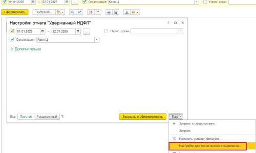 В отчете Удержанный НДФЛ Открываем настройки для технического специалиста — Еще-Загрузить настройки🙏🌷