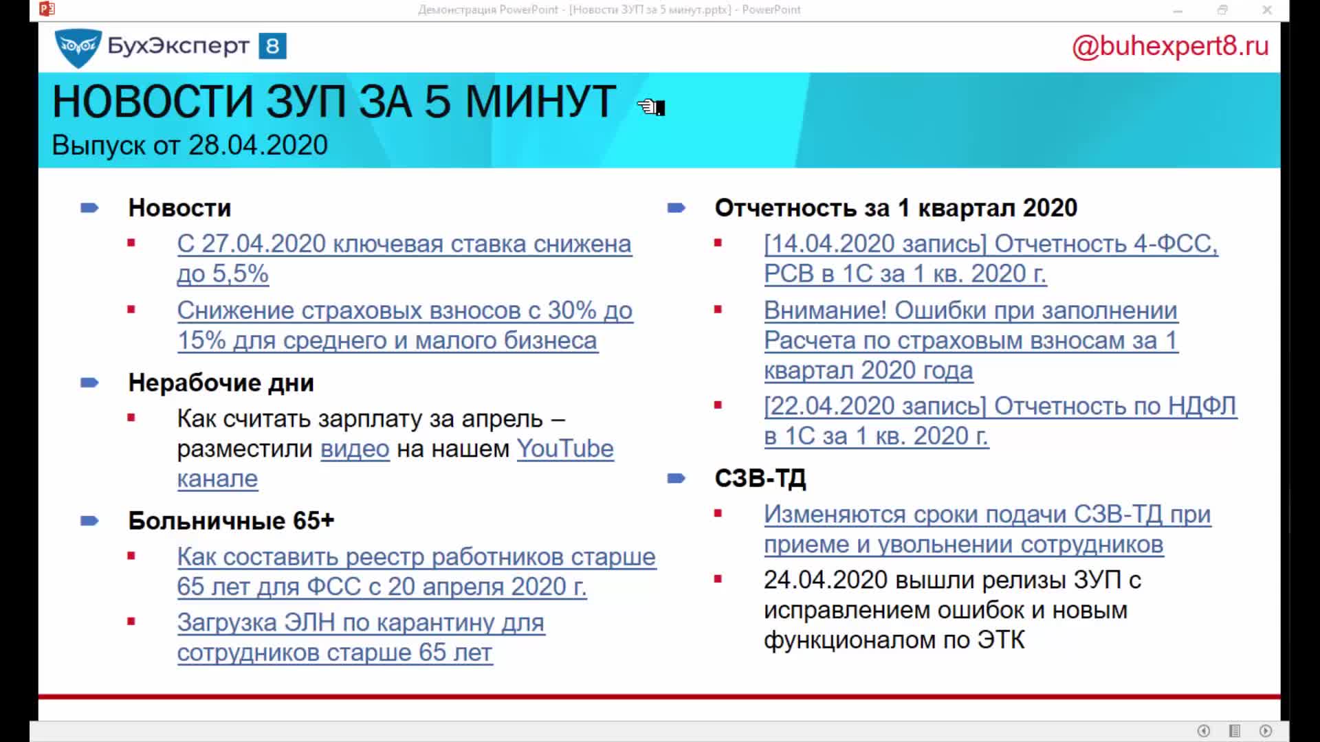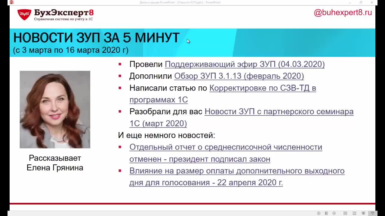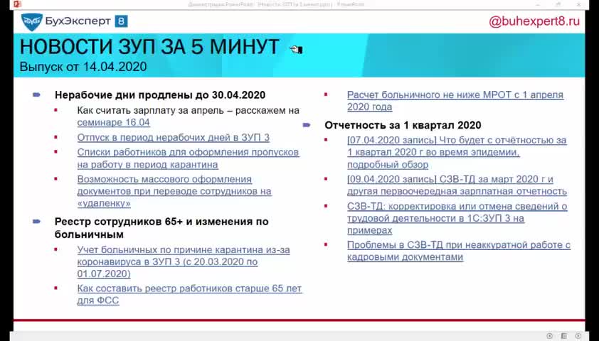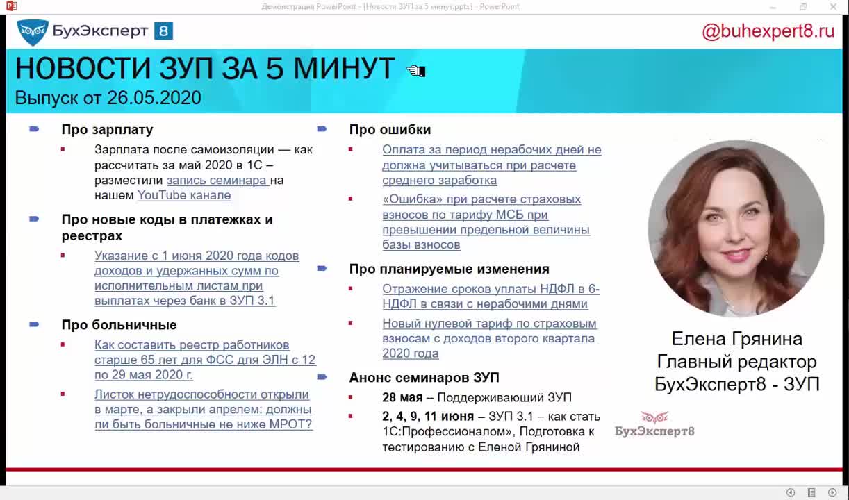 - [28.05.2020 эфир] Поддерживающий семинар ЗУП за май