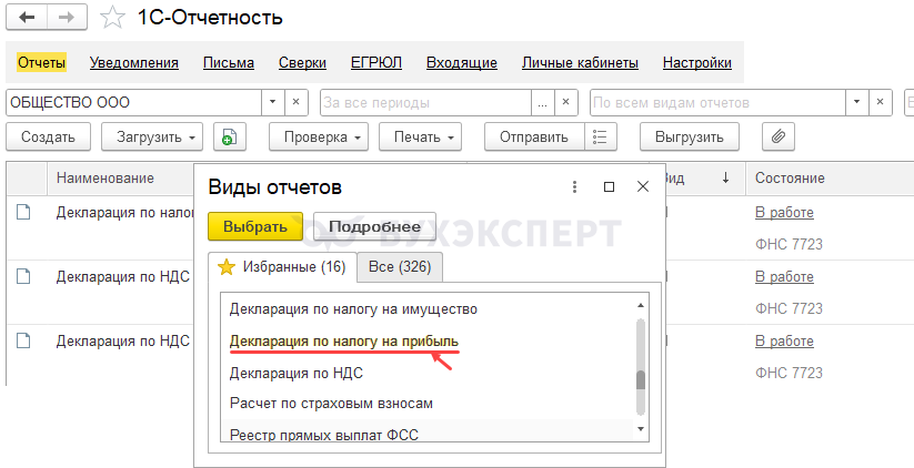 - Проверка и отправка декларации по налогу на прибыль в ИФНС