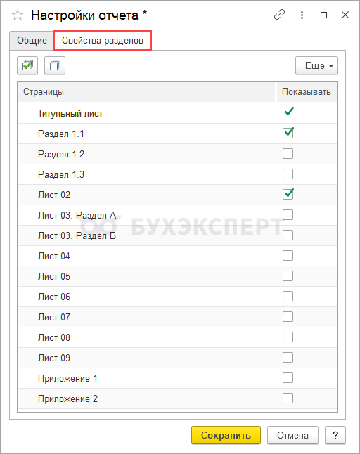 В вызванном меню оставьте только те листы декларации, которые будете представлять в ИФНС.