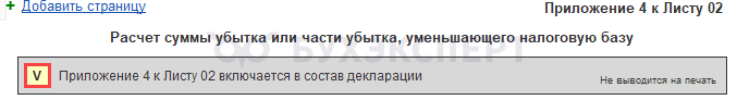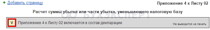Приложение 4 к Листу 02 в декларации за год заполняется автоматически при наличии убытка.