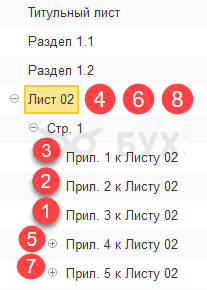 Приложения внутри Листа 02 всегда присутствуют в структуре декларации. Приложения, по которым есть данные, помечаются флагом. После этого они доступны для заполнения.