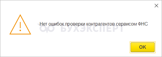 После проверки контрагентов на зеленом фоне должно быть сообщение, что ошибок нет.