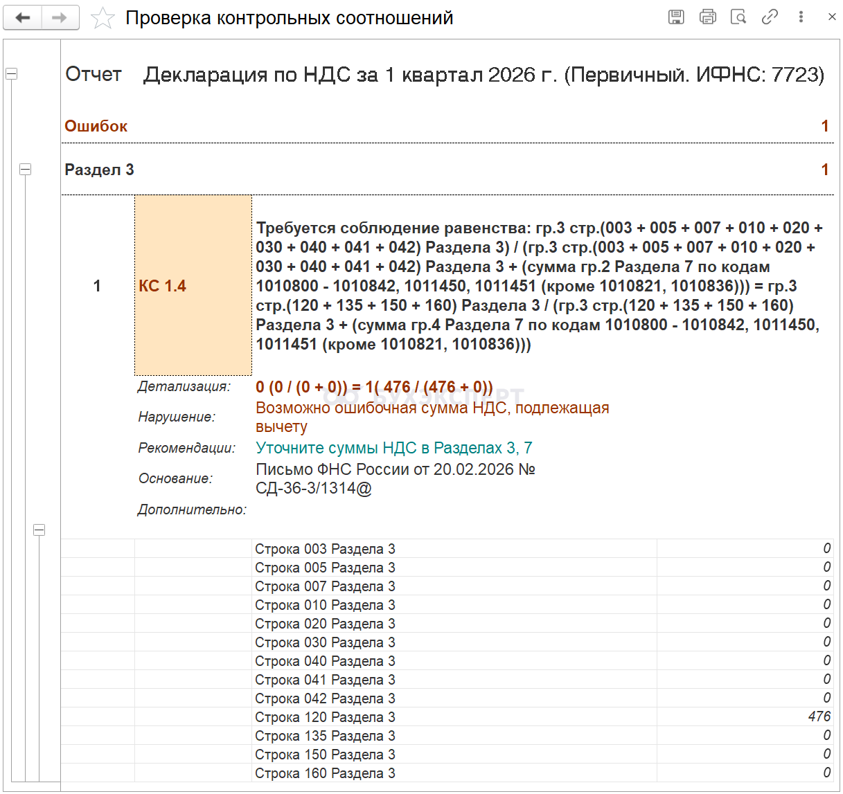 Обновлены контрольные соотношения для новой формы декларации по НДС, действующей с 1 квартала 2026 (Письмо ФНС от 20.02.2026 N СД‑36‑3/1314@).