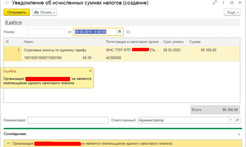 Если в 1С налог начислен и удержан, уведомление заполнится автоматически.