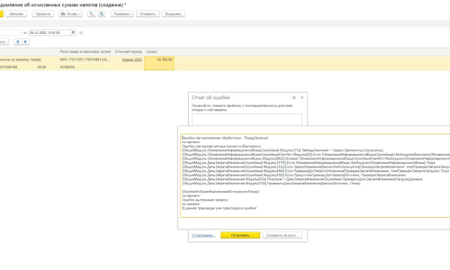 Поставив актуальную дату — итог не меняется. Если через операции создавать уведомление, также ошибка при попытке сохранения или проведения
