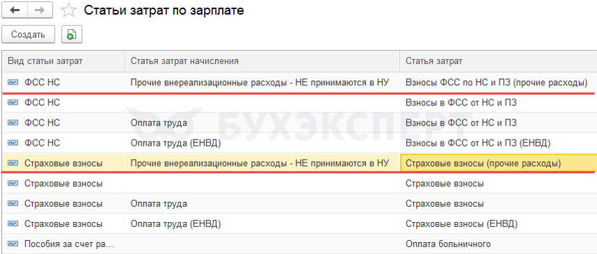 Настройки соответствия статей затрат в 1С:Бухгалтерии