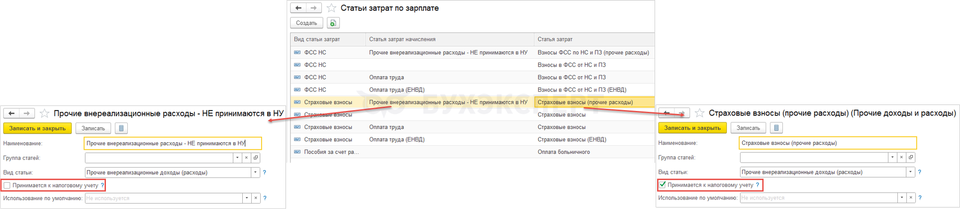 - Настройки соответствия статей затрат в 1С:Бухгалтерии