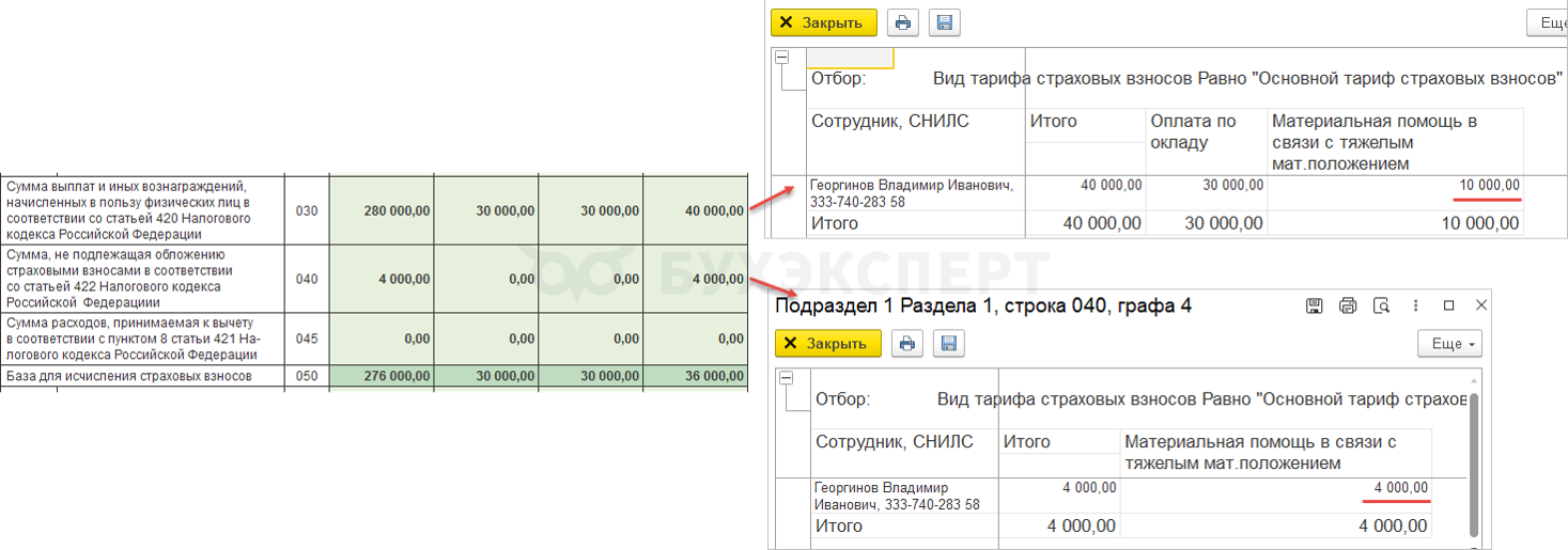 - Отражение частично облагаемой мат. помощи сотрудникам в РСВ и ЕФС-1 разделе 2