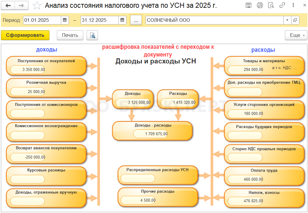 Подготовка и формирование декларации по УСН в 1С