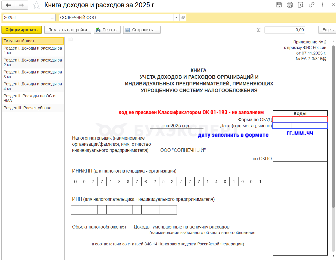 Дата в КУДиР в 1С автоматически не заполняется на титульном листе?