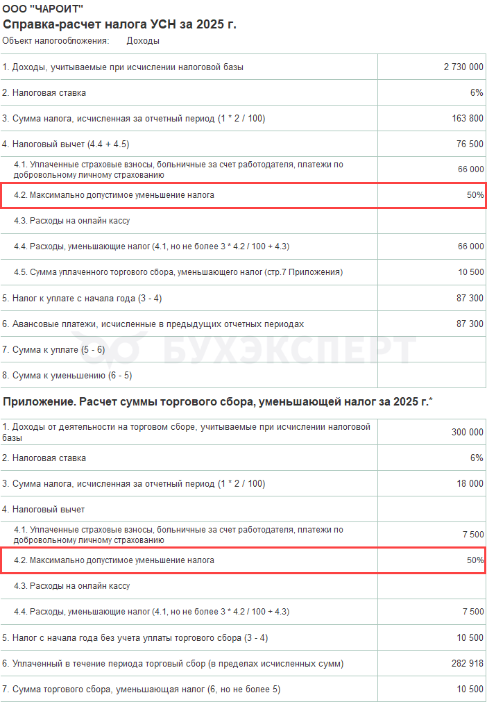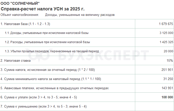 Справка-расчет авансового платежа по налогу УСН за 2025 поможет в расшифровке расчета:
