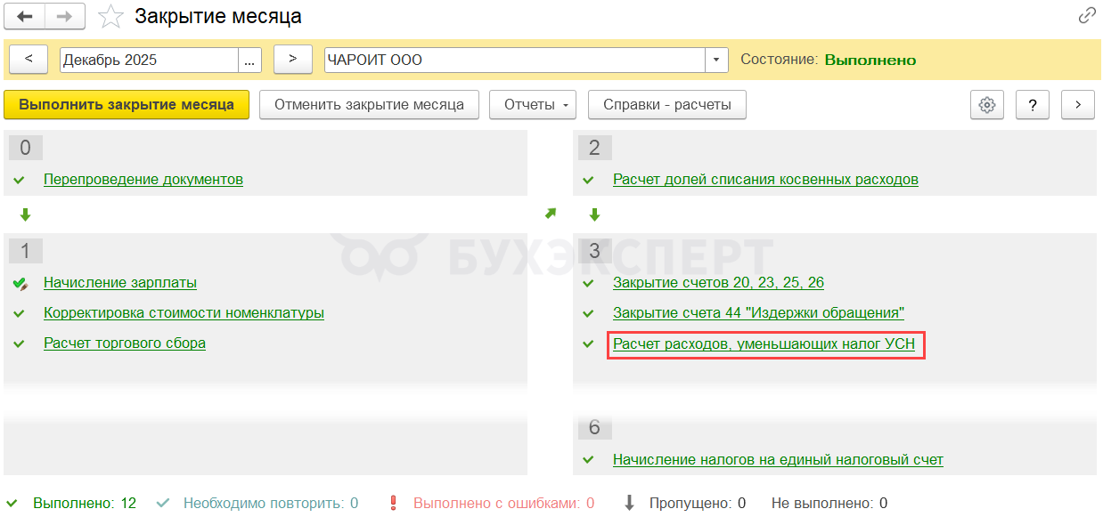 Шаг 8. Закрытие месяца