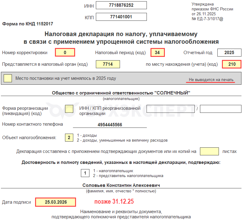 - Главное – Задачи организации – УСН, декларация за 2025г.