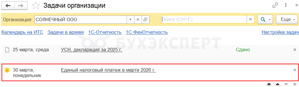 - Календарь бухгалтера в 1С список задач