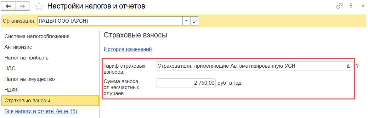 Автоматически устанавливаются тарифы страховых взносов (с учетом изменений).
