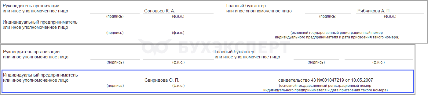 В счете-фактуре и УПД автоматически заполняются подписанты и ОГРН индивидуального предпринимателя из карточки организации, если продавец – ИП.