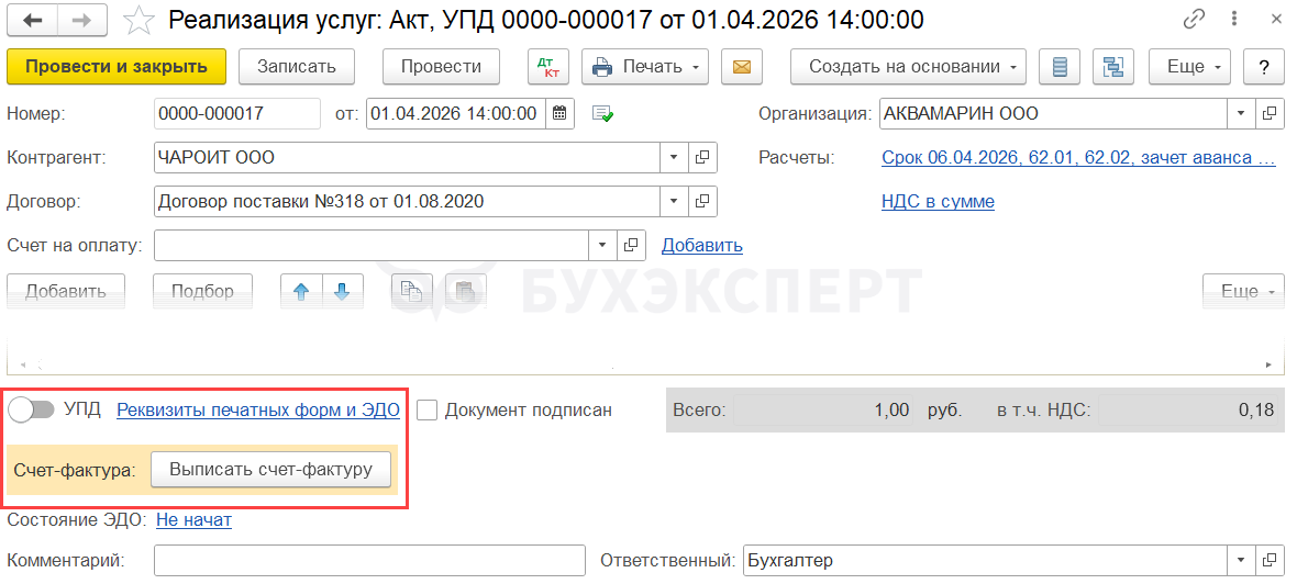 Изменения в заполнении счетов-фактур и УПД 2026 года в 1С в релизах 3.0.189, 3.0.194.14.