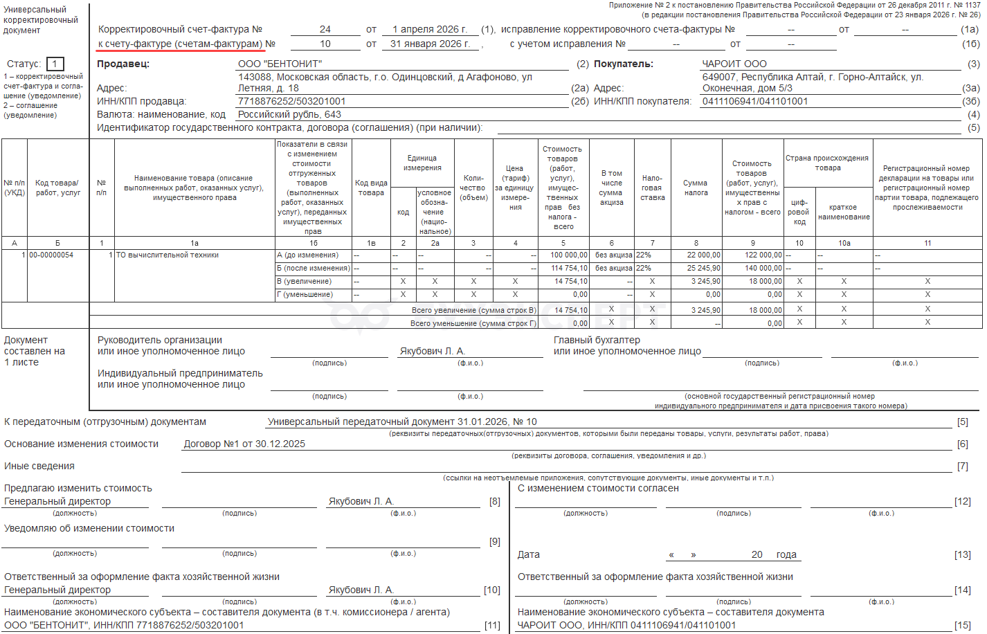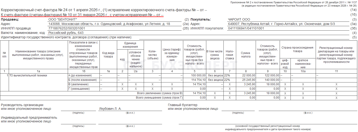 PDF - Образец корректировочного счета-фактуры — заполненный бланк