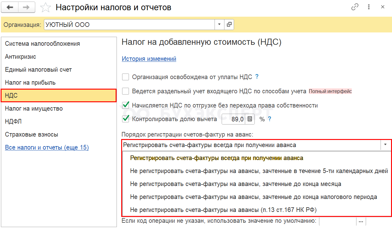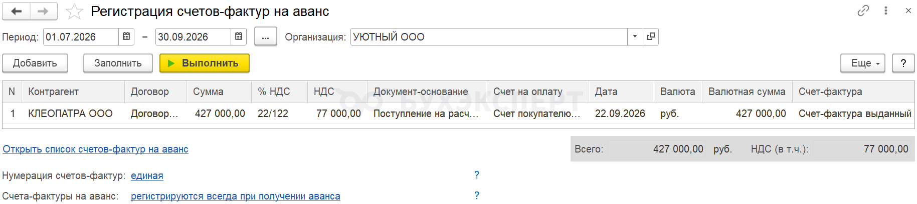 Перед тем как перейти к выписке авансовых счетов-фактур, разберемся, какие настройки необходимо предварительно выполнить в программе.