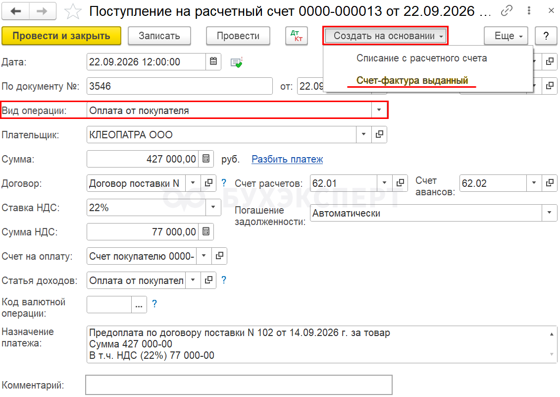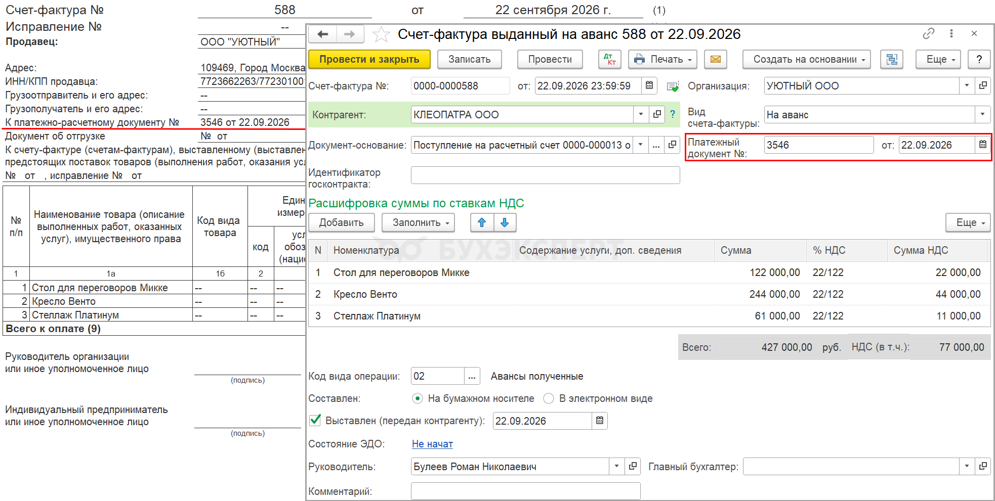 Как выставить счет-фактуру на аванс в 1С 8.3