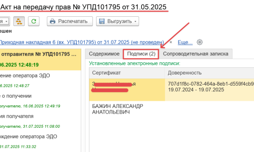Можете открыть этот документ ЭДО, перейти на вкладку Подписи, сделать скрин и прислать?