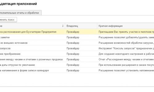 Там будет список всех расширений, которые есть у вашей обслуживающей организации.