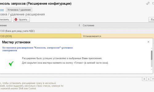 После выбора базы расширение автоматически будет подключено.
