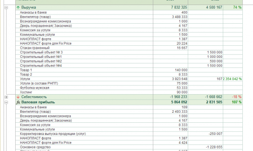 А если нажать на плюсик слева от Выручки, что программа покажет?