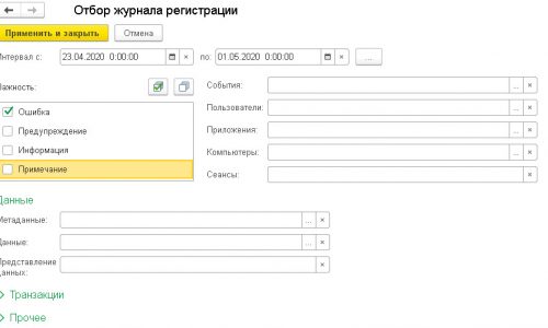 После отбора Журналом регистрации данных, выберите нужное.